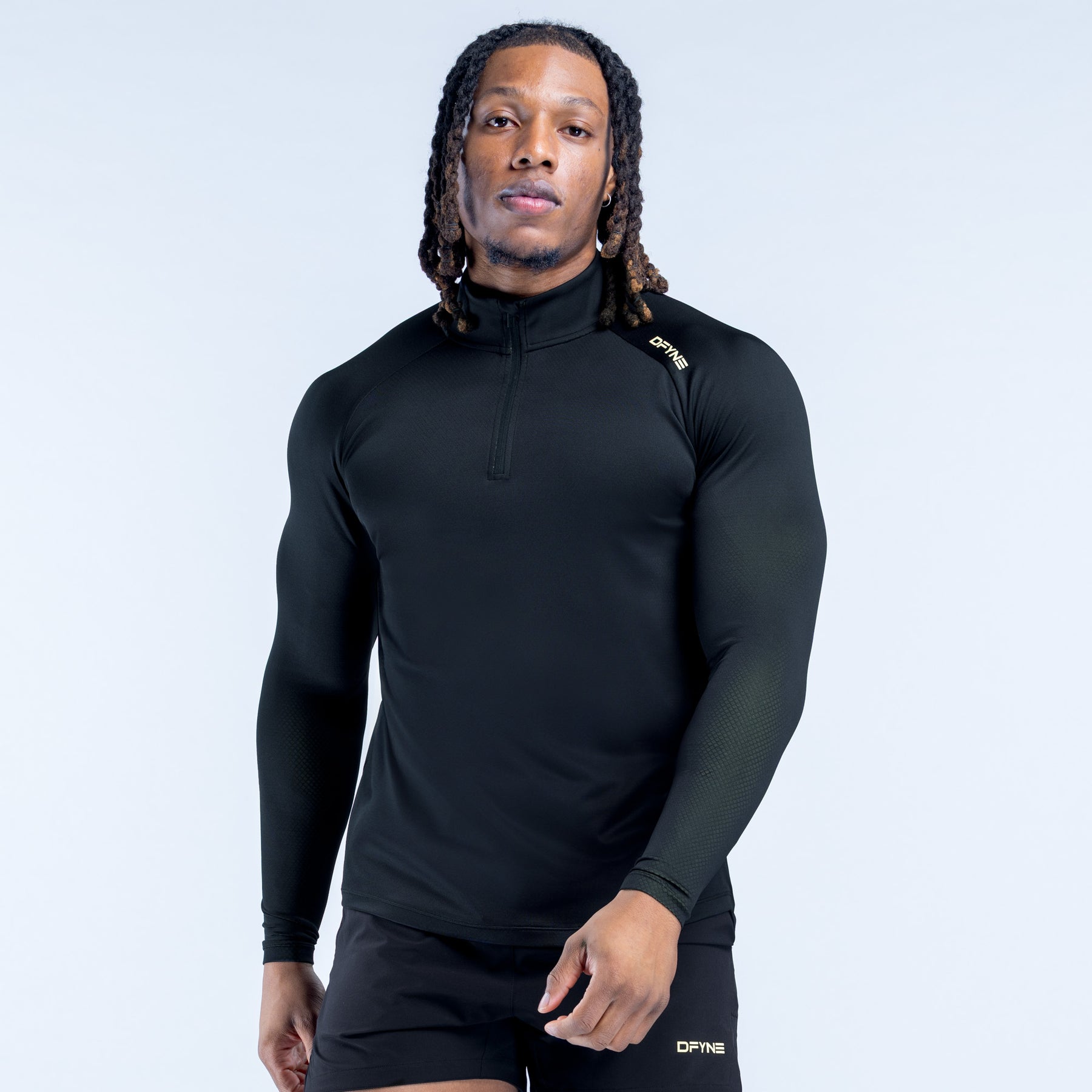 - Half zip with high collar